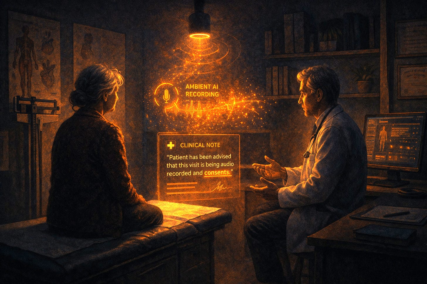 In an earlier piece in this series on consent, I wrote about how the current model of digital agreement has become a legal fiction: you agree to something general, the system does something very specific and seemingly out of scope of your original consent. The gap between those two things is where your accountability goes to live unexamined. That piece focused on software consent flows. The ambient scribe problem is the same architecture applied to your exam room.